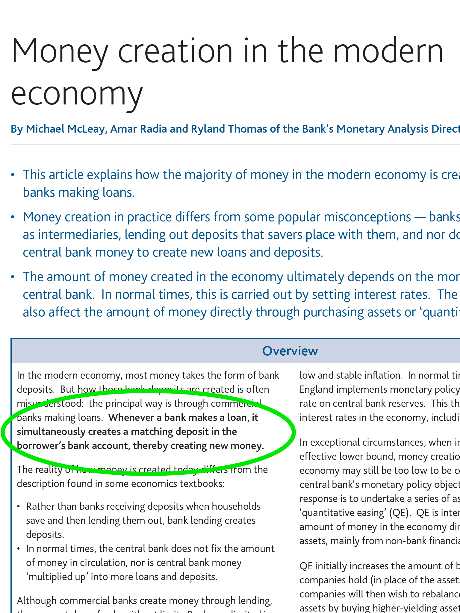 The Bank of England recently put out a report stating that the way in which many people think that money and banking works is simply wrong and that these falsehoods are often perpetuated by economics textbooks. They presented the frankly startling position that money which we are lent by banks simply does not exist.