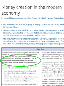 When we get a loan from the bank they are not handing over other people’s deposits, rather the money is created along with the loan. It is often assumed that when a bank loans out money what they are handing out is the deposits of other people but as Ryland Thomas (one of the authors of the report and part of the Bank of England’s Monetary Analysis Directorate) states in a video (see below):